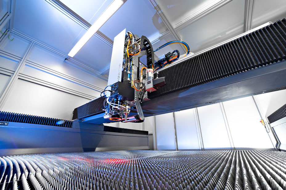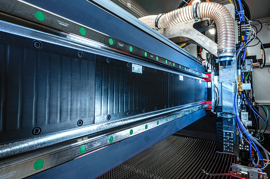 Naast de zeer succesvolle slag/lengte verhouding van deze machine - vooral de Y-as (2120/3000) - en de compatibiliteit van de twee processen lasersnijden en lassen, moet ook het geïntegreerde afzuigsysteem voor grote volumes worden benadrukt. “Er worden bijzonder hoge eisen gesteld aan de zuiverheid van de gefilterde uitlaatgassen, die vervuild zijn met deeltjes die gevaarlijk zijn voor de gezondheid,” meldt David Müller. “We hebben hier nu een afzuigcapaciteit van 10.000 kubieke meter per uur. Dat is nogal een huisnummer.”